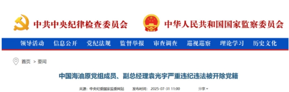 2025年3月1日,中央紀(jì)委國家監(jiān)委網(wǎng)站發(fā)布消息,袁光宇涉嫌嚴(yán)重違紀(jì)違法,接受中央紀(jì)委國家監(jiān)委紀(jì)律審查和監(jiān)察調(diào)查。