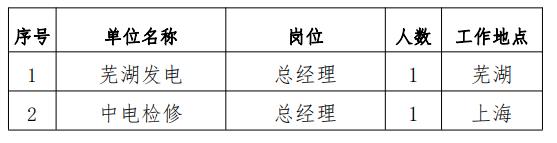 為進(jìn)一步引進(jìn)和吸納高素質(zhì)人才,現(xiàn)市場(chǎng)化選聘在中國(guó)電力所屬三級(jí)單位蕪湖發(fā)電有限責(zé)任公司(簡(jiǎn)稱(chēng)“蕪湖發(fā)電”)總經(jīng)理、中電電力檢修工程有限公司(簡(jiǎn)稱(chēng)“中電檢修”)總經(jīng)理崗位。具體事項(xiàng)如下: