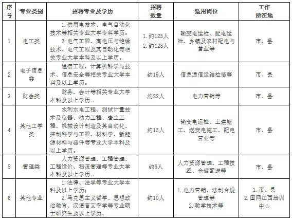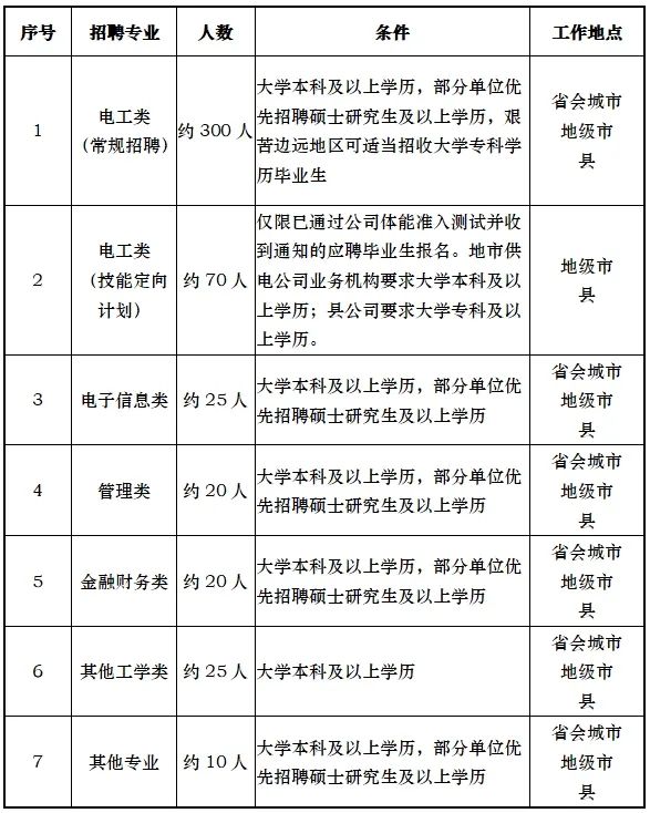電?類、計算機、通信、???程、???程(輸電?程)、財會等專業(yè),招聘?學(xué)本科及以上學(xué)歷畢業(yè)?。