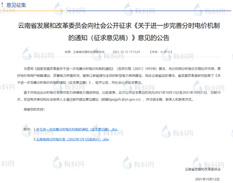 云南發(fā)改委發(fā)布公告《關(guān)于進一步完善分時電價機制的通知(征求意見稿)》。電度電價峰谷價差維持現(xiàn)行1.5:1:0.5,其中非市場化電量在目錄豐枯電價基礎(chǔ)上,峰時段電價在平時段基礎(chǔ)上上浮50%,谷時段在平時段電價下浮50%;市場交易電量以當(dāng)月電能量交易價格為基準(zhǔn),峰時段電價上浮50%,谷時段電價下浮50%。
