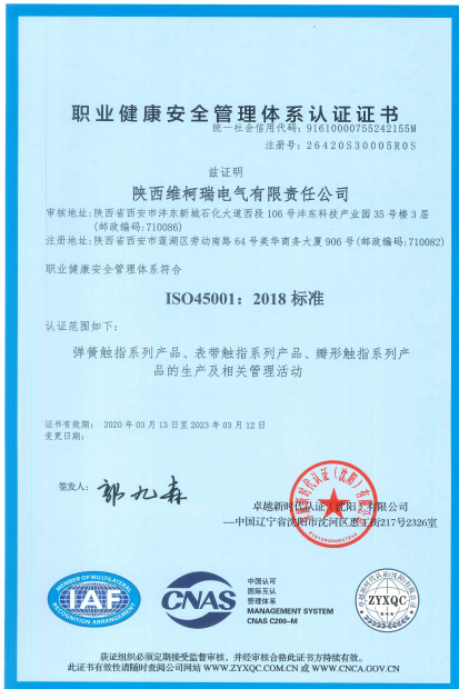 2020年3月公司獲得ISO45001證書(shū);