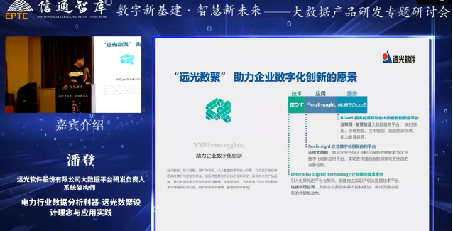 經(jīng)過多年積累,遠光軟件推出了“遠光數(shù)聚”智能大數(shù)據(jù)一站式服務(wù)平臺,并以技術(shù)、數(shù)據(jù)、應(yīng)用服務(wù)化為產(chǎn)品動因,研發(fā)系列產(chǎn)品,如企業(yè)數(shù)字化創(chuàng)新應(yīng)用平臺Realinsight、能源大數(shù)據(jù)服務(wù)平臺BDaaS等,致力于幫助企業(yè)實現(xiàn)數(shù)字化管理和創(chuàng)新。潘登向嘉賓們詳細介紹了“遠光數(shù)聚”的設(shè)計理念,以及為電力行業(yè)提供高效、精準(zhǔn)數(shù)據(jù)分析的應(yīng)用實踐。