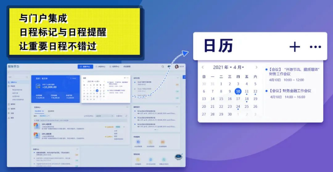 與門戶集成,日程標(biāo)記與日程提醒,雙重保證,讓重要日程不再錯過;
