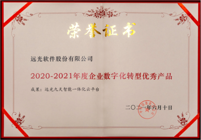 憑借強大的技術能力、協(xié)同創(chuàng)新能力和潛在應用價值,遠光九天平臺獲得了大會組委、活動評審和眾多企業(yè)、客戶的一致認可,獲選“2020-2021年度企業(yè)數(shù)字化轉(zhuǎn)型優(yōu)秀產(chǎn)品”。