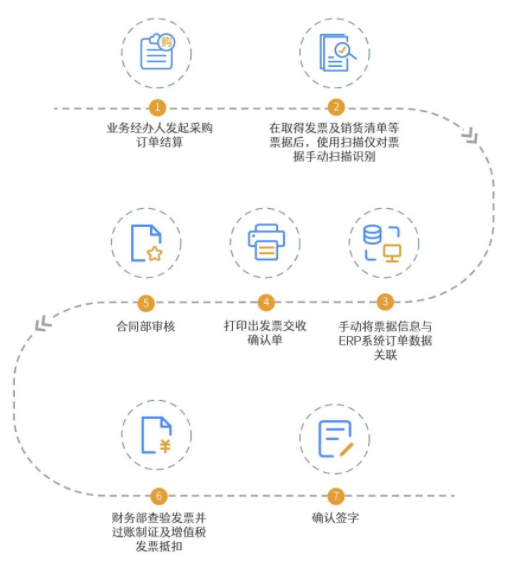 每一個(gè)業(yè)務(wù)過程環(huán)節(jié),都需要人工線下操作處理。僅在發(fā)票查驗(yàn)環(huán)節(jié),就需配備6-7名財(cái)務(wù)人員。