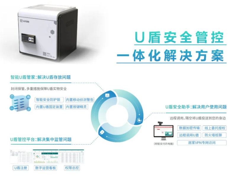 遠(yuǎn)光智能U盾管家通過運(yùn)用“人工智能+物聯(lián)網(wǎng)”技術(shù),以軟硬一體化的形式打造U盾安全管控一體化解決方案,對企業(yè)各類銀行U盾進(jìn)行封閉保管、線上授權(quán)、安全認(rèn)證、遠(yuǎn)程調(diào)用、實(shí)時(shí)監(jiān)控、追蹤及統(tǒng)計(jì),實(shí)現(xiàn)了企業(yè)U盾“存放-使用-簽退-存放”全鏈路的線上閉環(huán)管理,從而提升了U盾的保管、使用及操作的安全性,為企業(yè)安全保駕護(hù)航。