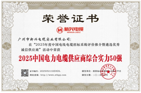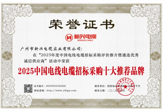 近日,在招投標(biāo)品牌調(diào)研公示服務(wù)平臺(tái)主辦的第四屆“2025年度中國(guó)電線電纜招標(biāo)采購評(píng)價(jià)推介暨遴選優(yōu)秀誠(chéng)信供應(yīng)商活動(dòng)”中,新興電纜憑借卓越的產(chǎn)品質(zhì)量和技術(shù)實(shí)力,獲得五項(xiàng)行業(yè)重要認(rèn)可:"2025中國(guó)電力電纜供應(yīng)商綜合實(shí)力50強(qiáng)"、"2025中國(guó)民營(yíng)電線電纜企業(yè)10強(qiáng)"、"2025中國(guó)電線電纜招標(biāo)采購十大推薦品牌"、"2025中國(guó)電力電纜十大品牌"和"2025中國(guó)電線電纜十大綠色品牌"。