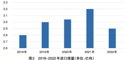 煤炭進口量為近四年最低。2022年,受國際局部沖突等影響,國際能源價格高位波動,全年進口動力煤價格呈現(xiàn)先升后降的趨勢,動力煤進口總量總體呈現(xiàn)下降趨勢,根據(jù)海關(guān)總署統(tǒng)計,全年進口煤炭2.9億噸,同比下降9.2%(見圖2)。產(chǎn)量基本維持在近五年來的平均水平。