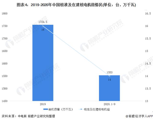根據(jù)中電聯(lián)的數(shù)據(jù)顯示,截至2019年底,我國核準(zhǔn)及在建核電機組16臺,裝機容量1754.5萬千瓦,位居世界第一。而截止到2020年9月底,在建核電機組14臺,總裝機容量1553萬千瓦。