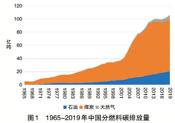 我國(guó)基礎(chǔ)設(shè)施建設(shè)和長(zhǎng)期以來(lái)的經(jīng)濟(jì)增長(zhǎng)結(jié)構(gòu)使得能源密集型重工業(yè)依然占據(jù)相當(dāng)大的增加值比重,而資源稟賦決定了我國(guó)煤炭主導(dǎo)的能源結(jié)構(gòu)。在過(guò)去的二十年里,我國(guó)高能源強(qiáng)度、高碳密度的發(fā)展軌跡使得二氧化碳排放量增長(zhǎng)了兩倍以上(如圖1所示)。我國(guó)提出碳中和目標(biāo),不僅是將碳約束內(nèi)生在能源清潔高效發(fā)展過(guò)程中,更是要求實(shí)現(xiàn)社會(huì)經(jīng)濟(jì)全鏈?zhǔn)睫D(zhuǎn)型升級(jí)。具體來(lái)講,到2060年,影響碳排放的主要部門要分別實(shí)現(xiàn):電力部門深度脫碳甚至負(fù)排放、工業(yè)部門工藝流程創(chuàng)新大幅降低碳排放、交通部門電動(dòng)化與生物燃油化、建筑部門高度清潔化。