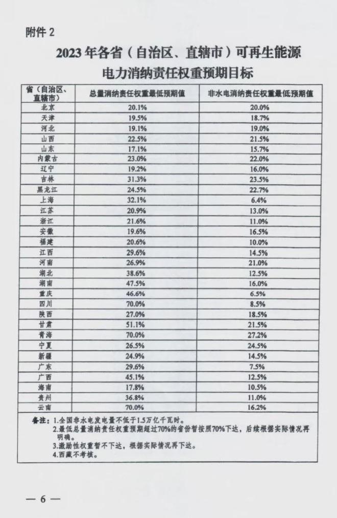 比如四川2021年的非水電責任權重是6%,實際完成情況是7.1%;2022年的下達的非水電責任權重是7.3%,2023年的預期目標是8.5%。