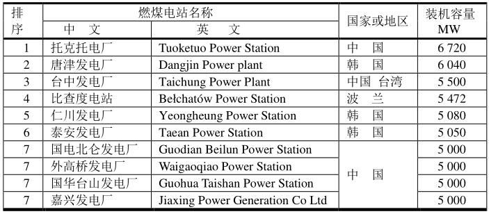 全球十大燃煤電站