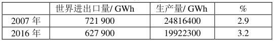 根據(jù)BP 2019的報(bào)告,2018年全球發(fā)電量為26614.8 TWh,因此,2018年全球電力貿(mào)易量為: