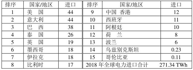 2018年全球電力進(jìn)口國(guó)的貿(mào)易量(單位:TWh)