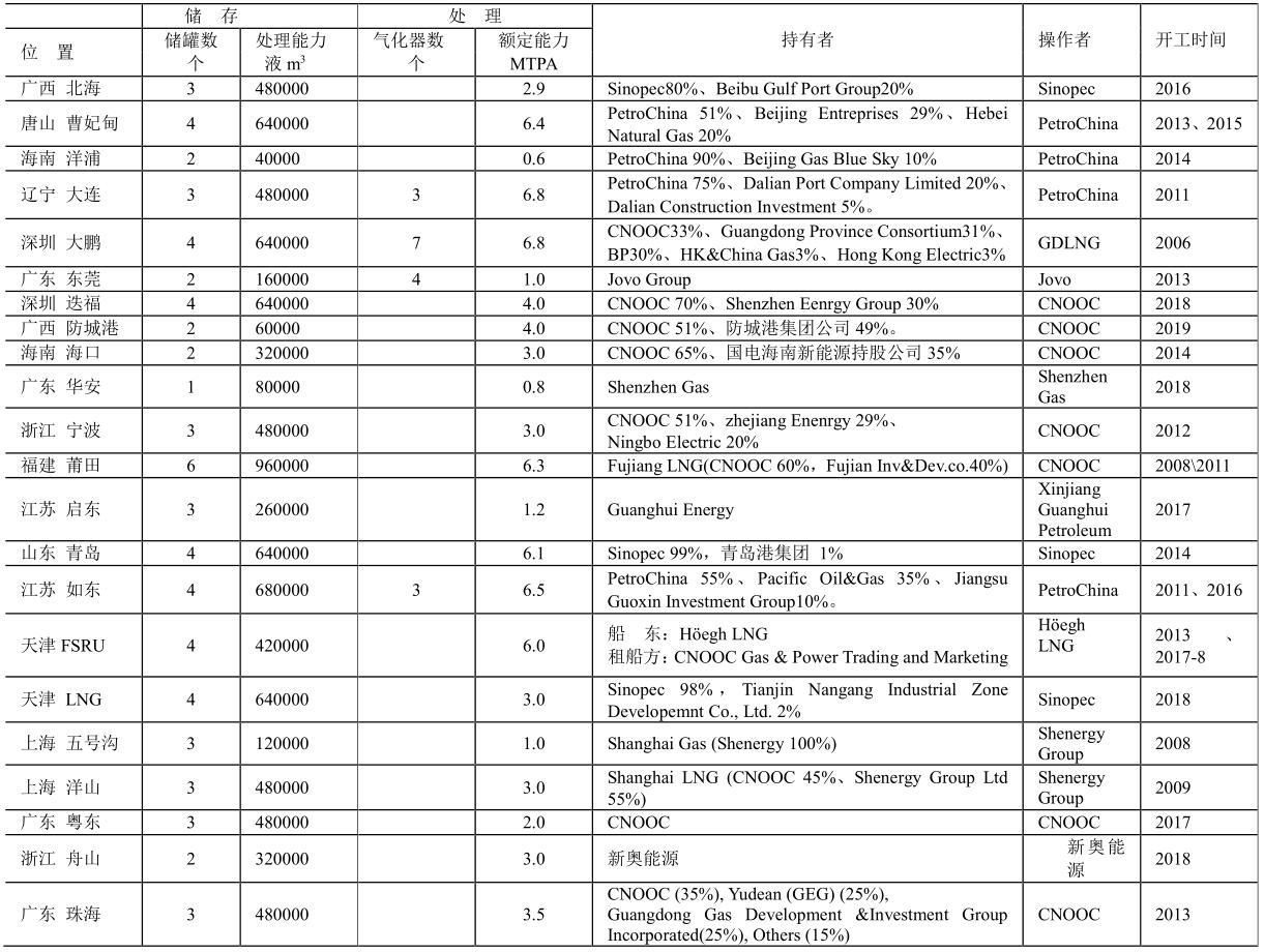 中國(guó)兩個(gè)新的再氣化終端于2019年開(kāi)始商業(yè)運(yùn)營(yíng)。2019年1月,防城港液化天然氣啟動(dòng),其額定氣化能力為0.6 MTPA ,深圳天然氣碼頭(氣化能力為0.8 MTPA ),8月收到第一批商品LNG。
