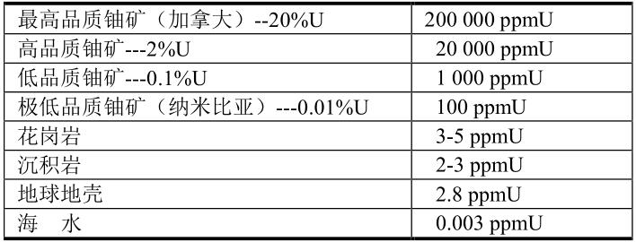 天然鈾的典型濃度