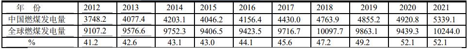 根據(jù)BP2022年報告,2021年中國燃煤發(fā)電占中國發(fā)電量5339.1/8534.3=62.6% ;中國燃煤發(fā)電占全球燃煤發(fā)電量5339.1/10244.0=52.1%;中國燃煤發(fā)電占全球發(fā)電總量5339.1/28466.3=18.8%。這組數(shù)據(jù)可以看出,中國燃煤發(fā)電不可小覷。