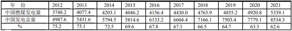 根據(jù)BP2022年報告,2021年中國燃煤發(fā)電占中國發(fā)電量5339.1/8534.3=62.6% ;中國燃煤發(fā)電占全球燃煤發(fā)電量5339.1/10244.0=52.1%;中國燃煤發(fā)電占全球發(fā)電總量5339.1/28466.3=18.8%。