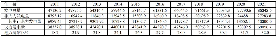 由于中國發(fā)電以化石燃料為主,特別是燃煤發(fā)電,電力清潔化程度進展較慢。