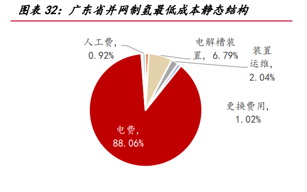 電氫分為電網(wǎng)電解水制氫(并網(wǎng)制氫)和風(fēng)光一體化電解水制氫(離網(wǎng)制氫)。 并網(wǎng)制氫是將系統(tǒng)接入電網(wǎng)取電,主要應(yīng)用于大規(guī)模制氫消納新能源發(fā)電,制氫成本 主要為電費。離網(wǎng)制氫則是將風(fēng)光發(fā)電機(jī)組產(chǎn)生的電能,不經(jīng)過電網(wǎng)直接提供給電解 水制氫設(shè)備,制氫成本主要為電源建設(shè)成本。 目前國內(nèi)電氫系統(tǒng)以并網(wǎng)制氫為主,電網(wǎng)作為穩(wěn)定能源支撐制氫系統(tǒng)負(fù)荷波動較 小,同時相關(guān)設(shè)備更成熟。但在并網(wǎng)制氫的情況下,由于系統(tǒng)內(nèi)電能需要經(jīng)過升價、 降壓、整流多次變換,導(dǎo)致?lián)p耗較大,同時承擔(dān)電網(wǎng)輸配電及政府基金及附加等成本。