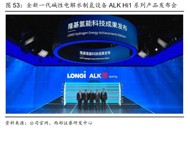 實(shí)施“綠電+綠氫”戰(zhàn)略,氫能業(yè)務(wù)蓬勃發(fā)展。光伏發(fā)電已成為全球最具經(jīng)濟(jì)性的清潔能 源,“綠電+綠氫”將推動(dòng)制氫成本 LCOH(單位制氫成本)的下降,同時(shí)有效克服可再生能 源間歇性、儲(chǔ)存性問(wèn)題。隆基氫能提供的“綠電+綠氫”解決方案能全面覆蓋合成甲醇、合 成氨、鋼鐵冶煉、石油煉化等領(lǐng)域。隆基氫能作為領(lǐng)先企業(yè),在 2022 年 5 月成功入圍中 石化首個(gè)萬(wàn)噸級(jí)綠氫示范項(xiàng)目,為其提供分布式光伏和光伏地面電站的解決方案,并提供 綠氫生產(chǎn)裝備以及制氫相關(guān)解決方案。萬(wàn)華化學(xué)與隆基綠能于 2023 年達(dá)成戰(zhàn)略合作,實(shí) 現(xiàn)產(chǎn)業(yè)優(yōu)勢(shì)互補(bǔ),助力“雙碳”目標(biāo)實(shí)現(xiàn)。據(jù)證券之星披露,隆基綠能擬與可再生和清潔 能源開發(fā)商 Invenergy 合作,在美國(guó)俄亥俄州建設(shè)一處 5GW 光伏組件工廠。
