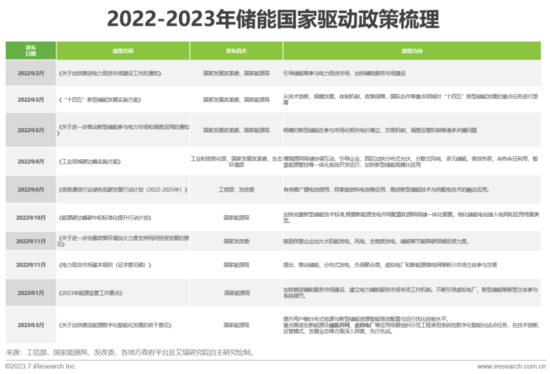 2022年能源局和發(fā)改委發(fā)布《“十四五”新型儲(chǔ)能發(fā)展實(shí)施方案》,方案中指出探索推廣共享儲(chǔ)能模式。鼓勵(lì)新能源電站以自建、租用或購(gòu)買等形式配置儲(chǔ)能,發(fā)揮儲(chǔ)能“一站多用”的共享作用。