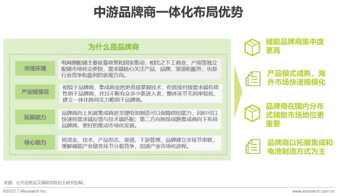 行業(yè)的發(fā)展終究要以市場(chǎng)為主,玩家把握市場(chǎng)端的打法也是產(chǎn)業(yè)逐漸成熟化的標(biāo)志。品牌商作為鏈接制造端和市場(chǎng)端的核心環(huán)節(jié),直接將上端集成產(chǎn)品通過(guò)設(shè)計(jì)開(kāi)發(fā)及管理對(duì)標(biāo)售賣給下游B、C端客戶,然后搭配一系列的供應(yīng)渠道、售后服務(wù)等實(shí)現(xiàn)商業(yè)化發(fā)展。未來(lái)的資本認(rèn)可度會(huì)逐步增高。以品牌商為核心想向產(chǎn)業(yè)鏈上下游布局會(huì)成為行業(yè)集中化發(fā)展的主要形態(tài)。