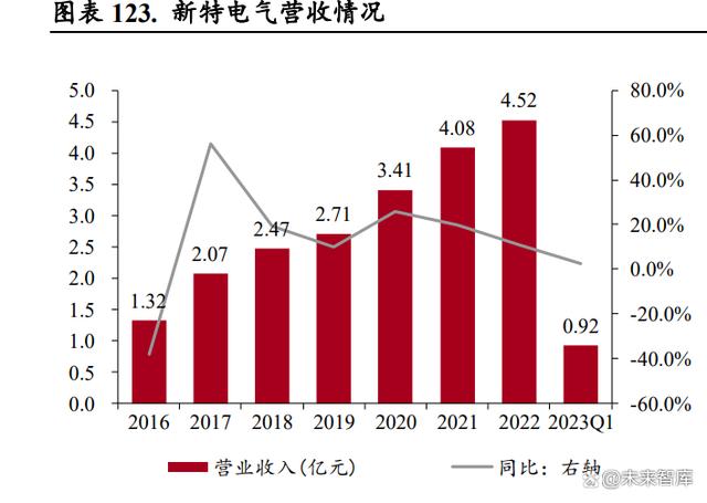 公司營收快速增長,變壓器是營收主力。公司 2016 年的營收為 1.32 億元,2022 年營收已達(dá) 4.52 億 元,復(fù)合增長達(dá) 22.72%,呈現(xiàn)高速增長的態(tài)勢。分產(chǎn)品來看,公司變壓器是公司營收的絕對主力, 長期營收占比在 90%以上。