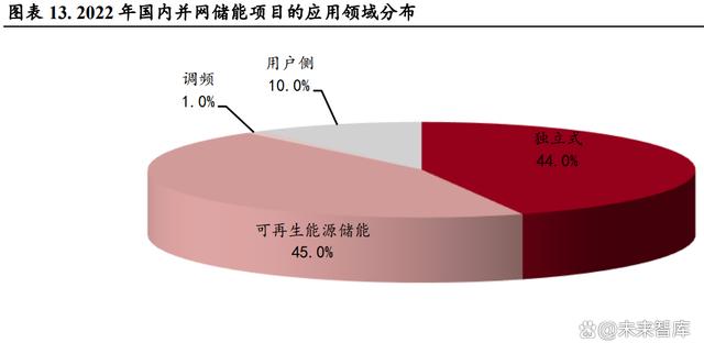 我國作為世界第一大儲能市場,應(yīng)用場景主要集中在發(fā)電側(cè)和電網(wǎng)側(cè)。從 2022 年已并網(wǎng)項目的應(yīng)用 領(lǐng)域來看,可再生能源儲能項目和獨(dú)立式儲能項目貢獻(xiàn)了絕大多數(shù)增量,分別占比達(dá) 45%和 44%, 用戶側(cè)儲能項目僅占比 10%,但其中還包括 3 個 10 小時鉛炭儲能項目。