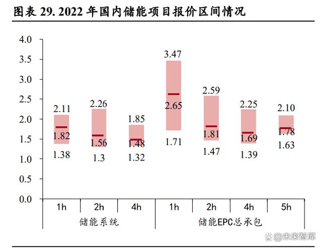 儲能系統(tǒng)投標(biāo)價格持續(xù)下行,刺激需求釋放。根據(jù)儲能與電力市場公眾號的統(tǒng)計,2022 年招標(biāo)的近 150個儲能項目中,2h 的儲能系統(tǒng)占比達(dá) 63%,平均報價 1.56 元/Wh;儲能 EPC 總承包招標(biāo)的近 120 個項目中,2h 的 EPC 項目占比達(dá) 77%,平均報價 1.81 元/Wh。從時間維度上來看,2022 年儲能系 統(tǒng)報價呈現(xiàn)出了“兩頭高中間低”的特點(diǎn),并且從 5 月起持續(xù)穩(wěn)定在 1.5-1.6 元/kWh 的范圍之內(nèi), 而進(jìn)入 2023 年之后,隨著電芯主要原材料碳酸鋰價格的進(jìn)入下行通道,儲能系統(tǒng)報價屢創(chuàng)新低,2023 年 7 月份 2 小時儲能系統(tǒng)的平均報價為 1.12 元/Wh,同比下降 28.24%,環(huán)比下降 0.88%,最低報價 低至 1.00 元/Wh,而 4 小時儲能系統(tǒng)最低報價低至 0.87 元/Wh。儲能系統(tǒng)價格的快速下降,將有力 提升大儲項目業(yè)主方的投資積極性,推動項目的建設(shè)進(jìn)程。