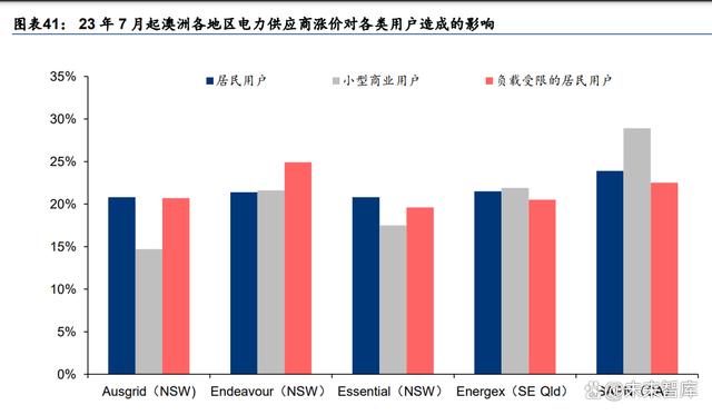 23 上半年澳洲電價(jià)處于環(huán)比上升階段,AER 預(yù)計(jì)下半年起電價(jià)上升 20%~25%。盡管相較 于 22 年,23 年眾多能源問題有所緩解,但是長期來看,煤炭和天然氣供應(yīng)仍存在不利因 素,例如國際能源價(jià)格仍然偏高,Liddell 發(fā)電站于 23 年 4 月關(guān)閉導(dǎo)致煤電減少,澳洲國內(nèi) 天然氣供應(yīng)逐漸減少等。根據(jù) AER 統(tǒng)計(jì),23Q2 昆士蘭州、新南維爾州、維多利亞州、南 澳大利亞州四州的電力現(xiàn)貨價(jià)格分別達(dá)到 139/148/96/136 澳元/MWh,同比-59.6%/-53.9% /-60.2%/-51.4%,雖然有所下降,但是均仍顯著高于前期 21 年全年平均水平(72.63 澳元 /MWh)。由于通脹、俄烏沖突和電廠老化造成的批發(fā)價(jià)格上升,下半年電價(jià)或仍處于上升 通道。根據(jù) AER,23 年 7 月 1 日起,電價(jià)預(yù)計(jì)將有同比 20%~25%的漲幅,主要影響對象 是家庭用戶和小商販,或?qū)⒅苯哟碳ぜ彝δ馨惭b需求。