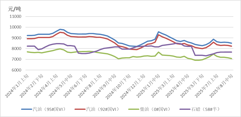 8月中旬,IEA上調(diào)全球石油供應(yīng)過剩預(yù)期,美國能源信息署(EIA)預(yù)測2025年美國原油日產(chǎn)量將創(chuàng)1341萬桶紀(jì)錄,夏季駕駛旺季臨近尾聲原油需求下降預(yù)期增強(qiáng),中美關(guān)稅暫停措施再延長90天等因素推動(dòng)國際油價(jià)延續(xù)下跌態(tài)勢。然而,市場對(duì)美聯(lián)儲(chǔ)9月降息的預(yù)期增強(qiáng),阿拉斯加美俄峰會(huì)并未取得實(shí)質(zhì)性進(jìn)展,俄烏局勢不確定性推升地緣風(fēng)險(xiǎn)溢價(jià),受上述因素影響,國際油價(jià)跌幅有所收窄。