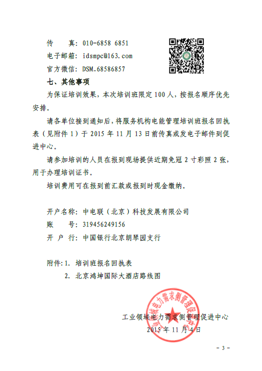 1、關于舉辦工業(yè)領域電力需求側管理電能管理培訓班通知(工電促[2015]11號)