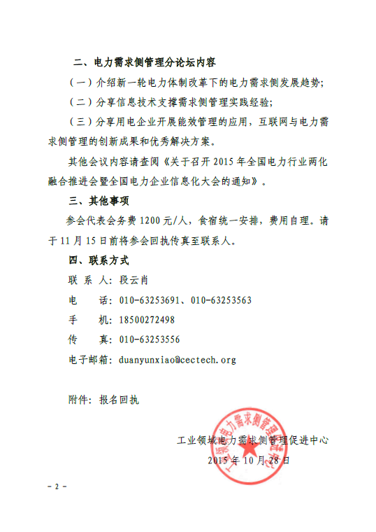 2.關(guān)于組織參加2015年全國電力企業(yè)信息化大會電力需求側(cè)管理分論壇的通知(工電促[2015]10號)